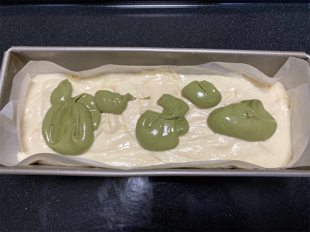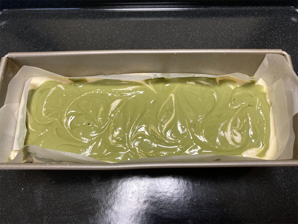 (抹茶が多かったのか、マーブル状にならない😅)