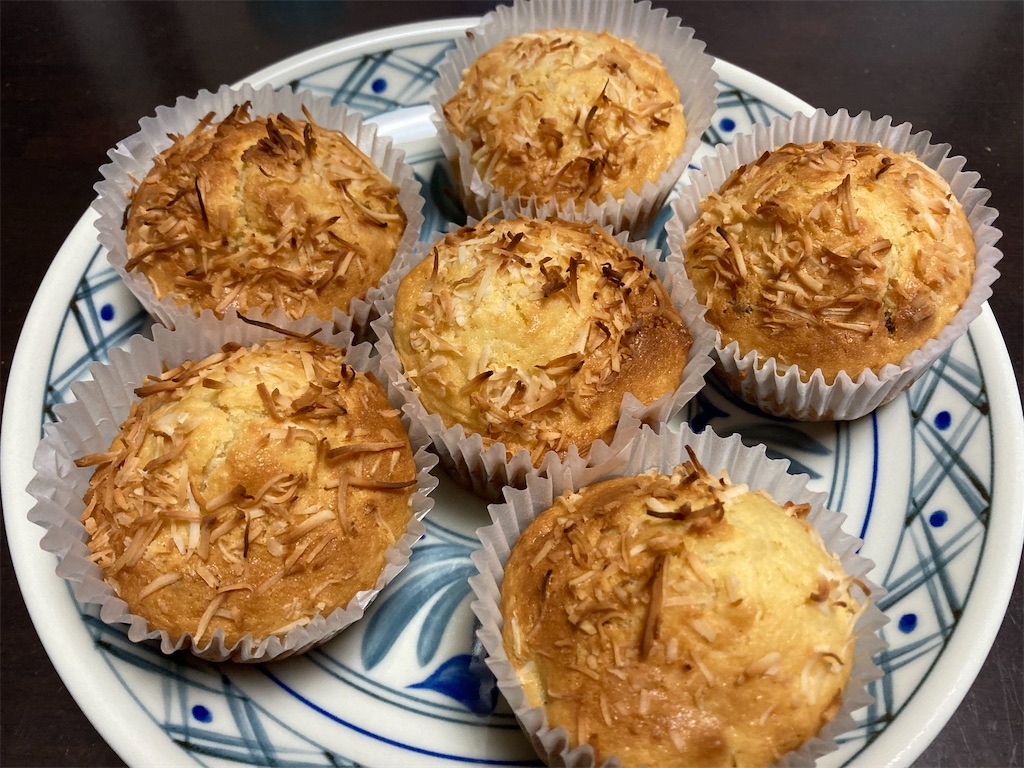 ナッツとココナッツを入れたマフィンを作ってみました。